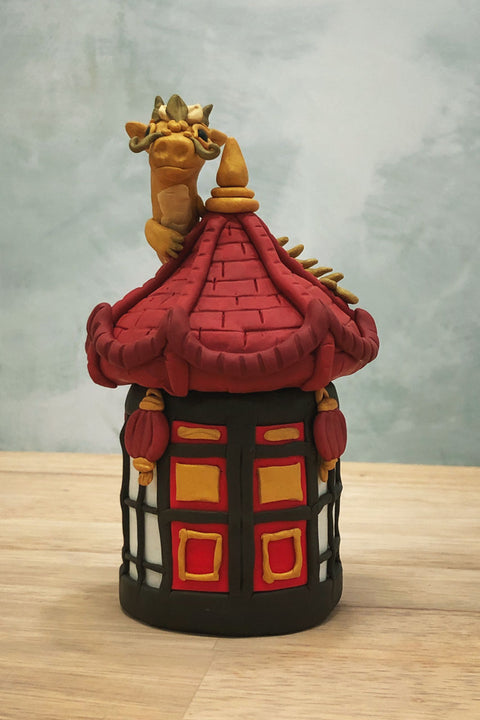 Create a Lucky House lantern, complete with a dragon nestled on top and softly glowing windows that invite warmth and good fortune in. 🏮🐉✨ We use an led tealight only (safe + magical ✨). Alternatively, place your treasures within, and the dragon will guard them with unwavering honour!