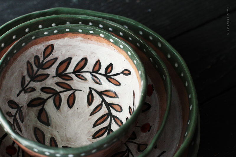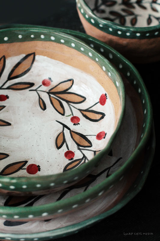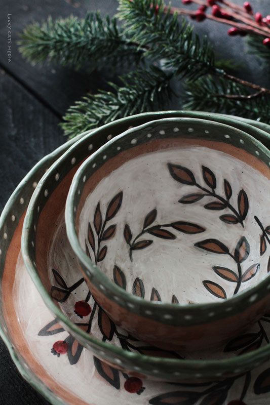9" D × 2" H (plate) | 4.5" D × 3" H (bowl)