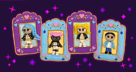 Our oven-bake clay projects are great for all skill levels. We use Ditto brand oven-bake clay, the coloured blocks are incredibly malleable to use. Once baked, it is solid, permanent and ready to be displayed. Figures approx. 1 wide × 2.5 height.