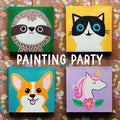 Our painting projects are great for all skill levels. Each guest will create ONE painting on an 8×8 stretched canvas using acrylics paints. Choose from the following options: Cat, Dog, Unicorn, Panda or Sloth.