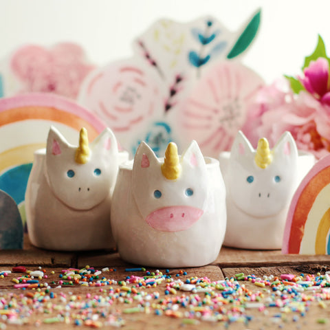 Our earthenware clay projects are great for all skill levels. Each person hand-builds their own clay creation from scratch and applies coloured glaze for the details. Once it's dried, we will fire it in our kiln and it'll be ready for pickup in 14 days. Cups are approx. 2.5 diameter × 2.5 height.