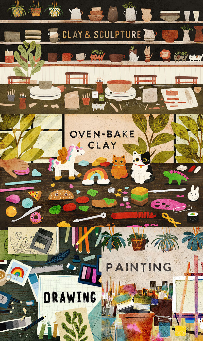 Our projects are designed to incorporate fine art techniques, with exciting new projects and artist inspirations every session. Students learn to use professional artist-quality tools and materials to complete their artworks in an art studio environment. Students take home artwork once complete.